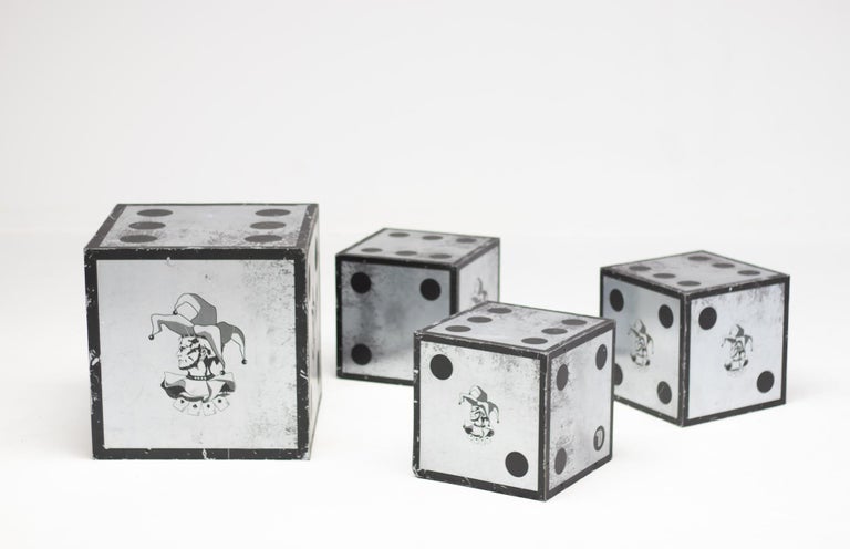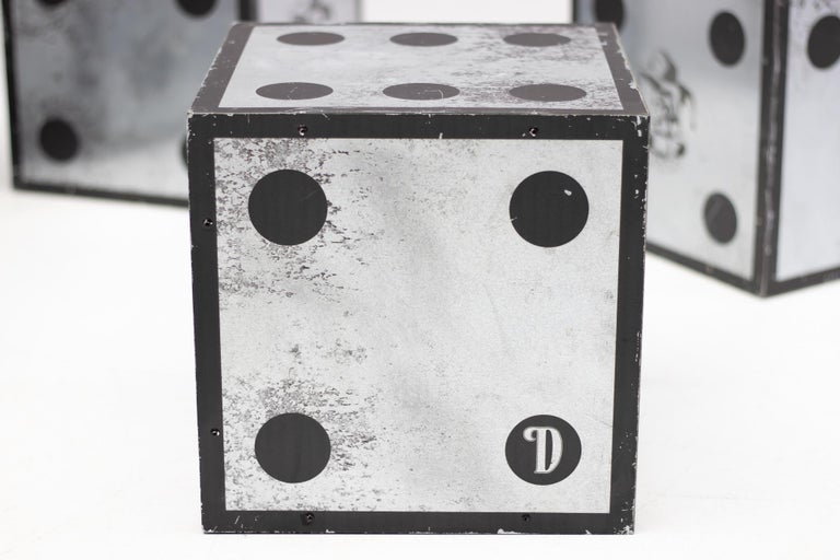 A rare and highly collectible set of four original display cubes created for the Amsterdam Diesel flagship store. Constructed in galvanized steel, these industrial-modern cubes feature bold Diesel graphics, including large dice-style numbering and the brand’s iconic head emblem. The group includes one larger cube (35 cm) and three smaller cubes (25 cm), offering dynamic visual possibilities for stacking, clustering, or using individually. Their crisp, industrial aesthetic—combined with unmistakable Diesel identity—makes them ideal for use as display risers, sculptural décor, side tables, or retail installations. Authentic in every detail and rich with brand heritage, this set adds an edge of contemporary street culture to any interior or creative environment. Provenance: Diesel Flagship Store, Amsterdam Materials: Galvanized steel with Diesel dice numbers & head graphics Dimensions: One 35 cm cube; three 25 cm cubes Condition: Good used display condition consistent with in-store use