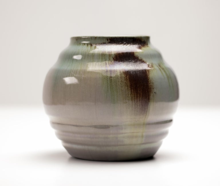 A striking and rare ceramic vase by renowned Dutch sculptor and ceramist W.C. Brouwer, crafted in his own workshop in the Netherlands. This piece exemplifies Brouwer’s signature fusion of sculptural form and refined glaze work, reflecting the Art Nouveau and early Modernist influences that shaped his practice. Impressively marked to the base with the artist’s maker’s stamp and numbered 494, this vase not only showcases Brouwer’s exceptional technical skill but also holds strong provenance, making it a desirable collector’s item for enthusiasts of early 20th-century European ceramics. The form is elegant and well-proportioned, with a subtle, tactile surface that speaks to Brouwer’s deep understanding of clay as a sculptural medium. Pieces from Brouwer’s own atelier are increasingly rare on the market, particularly those bearing clear marks and production numbers. Condition: Excellent vintage condition with minor signs of age consistent with careful use and display. Provenance: Private collection, Netherlands. An exceptional opportunity to acquire an authentic work by one of the Netherlands’ most respected ceramic artists.