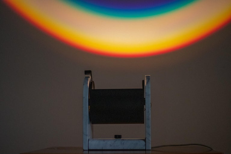 An expressive and highly collectible postmodern table lamp designed by Andrea Bellosi for Studio Alchimia, the seminal Milanese design collective that redefined radical Italian design in the late 20th century. Titled “Arc en Ciel”, this sculptural lamp is conceived as a functional light object and a chromatic statement piece. The design features a dynamic rainbow composition that diffuses light through layered, vividly colored elements, creating a luminous spectrum effect when illuminated. The result is both playful and architectural—an unmistakable embodiment of Alchimia’s philosophy of emotional, anti-functional design. Executed with meticulous craftsmanship, the lamp reflects Bellosi’s experimental approach to form, color, and material, positioning it firmly within the canon of Italian postmodern design. When lit, it casts a warm, atmospheric glow while serving as a striking visual focal point even when off. Details Designer: Andrea Bellosi Design House: Studio Alchimia Model: Arc en Ciel (Rainbow Light) Origin: Italy Period: Late 20th century Type: Table lamp Style: Italian Postmodern / Radical Design Authenticity: Marked at the handle of the inner shade A rare and important piece for collectors of Studio Alchimia, Memphis-era design, or museum-quality postmodern lighting. Suitable for both private collections and curated interiors seeking an iconic design statement.
