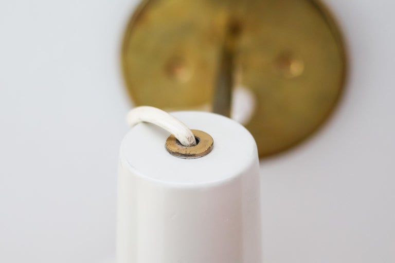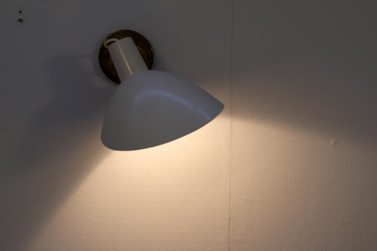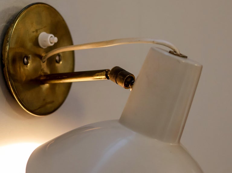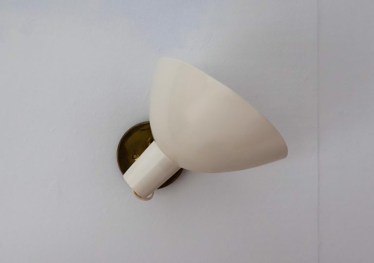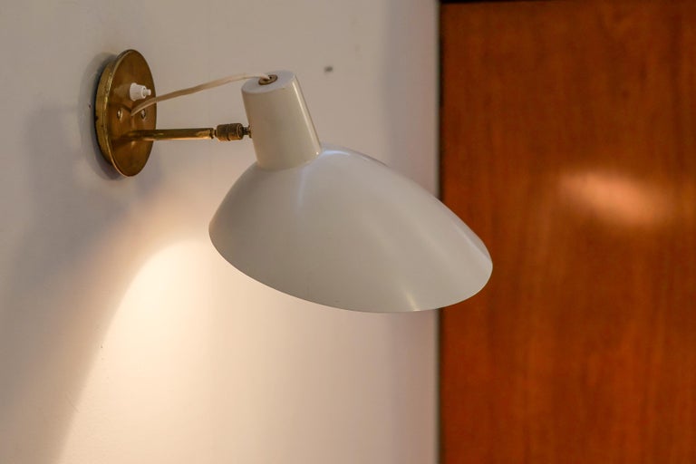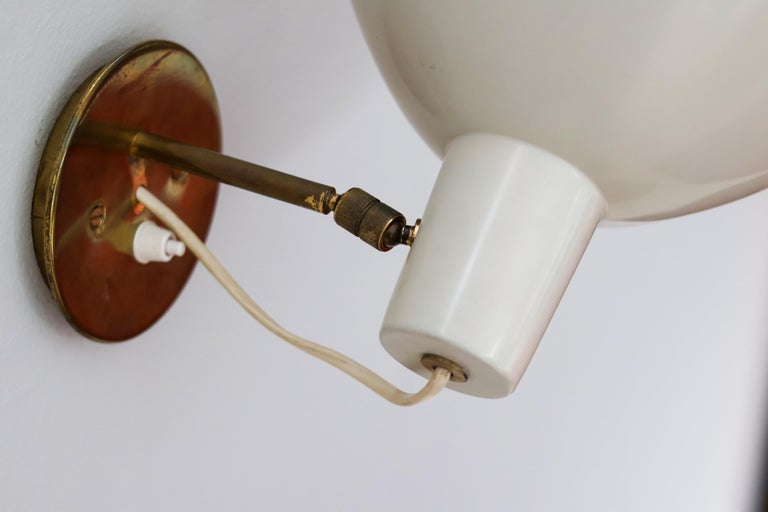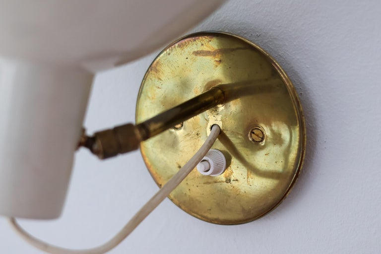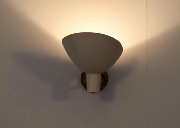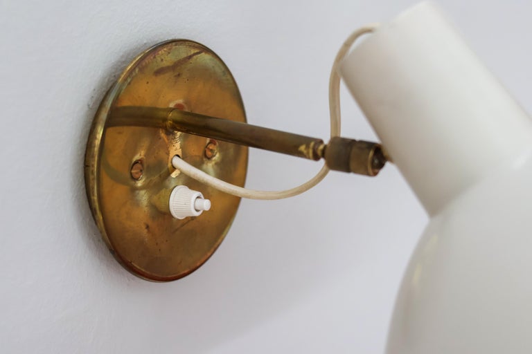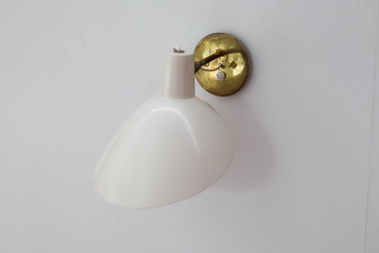Sculptural and refined wall light designed by Vittoriano Viganò for Arteluce, among the most influential Italian lighting manufacturers of the post-war period. The fixture exemplifies Viganò’s rigorous modernist approach, combining architectural clarity with elegant, functional detailing. The lamp features a minimalist metal structure with a carefully articulated form that provides both direct and ambient illumination. Of particular note is the presence of an optional and rare integrated on/off switch, an uncommon and highly desirable feature that enhances both the functionality and originality of the piece. Such switches were not standard on wall-mounted models of the period and are seldom found intact today. The restrained geometry, refined materials, and thoughtful engineering make this wall light suitable for both residential and architectural interiors. Typical of Arteluce production, the craftsmanship and attention to detail are of exceptional quality. An important example of post-war Italian design, reflecting the innovative spirit that positioned Arteluce at the forefront of international lighting design during the 1950s and 1960s. Designer: Vittoriano Viganò Manufacturer: Arteluce Origin: Italy Period: 1950s–1960s Materials: Metal Features: Rare integrated on/off switch Style: Mid-Century Modern Condition: Good vintage condition, with minor wear consistent with age and use A rare and highly collectible lighting piece by one of Italy’s most respected modernist designers.