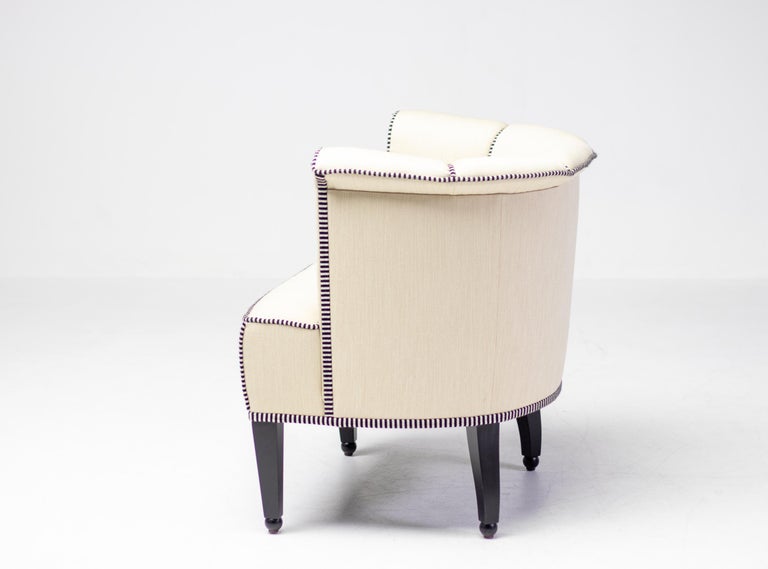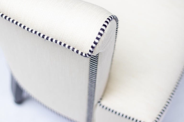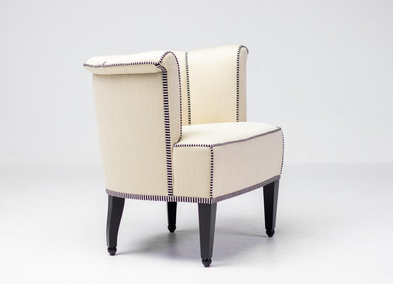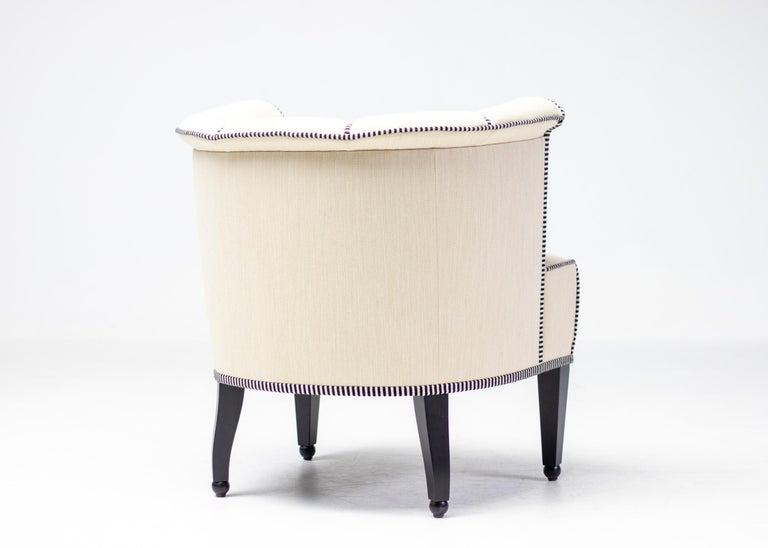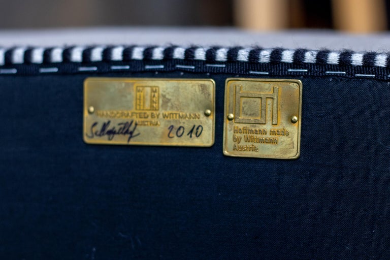 This arm chair was designed in 1912 for Dr. Hugo Koller’s music room as part of the furnishings at his Vienna apartment in Alleegasse (now Argentinierstrasse). Manufactured in 2010 by the original manufacturer Wittmann, Austria. Marked with bronze plaque at the bottom of the chair. Josef Hoffmann (15 December 1870 – 7 May 1956) was an Austrian architect and designer. He was among the founders of Vienna Secession and co-establisher of the Wiener Werkstätte. His most famous architectural work is the Palais Stoclet, in Brussels, (1905–1911) a pioneering work of Modern Architecture, Art Deco and peak of Vienna Secession architecture. In 1903, along with Koloman Moser, and banker Fritz Wärndorfer, who provided most of the capital, he launched a much more ambitious venture, the Wiener Werkstätte, an enterprise of artists and craftsmen working together to create all the elements of a complete work of art, or Gesamtkunstwerk.[7] including architecture, furniture, lamps, glass and metal work, dishes and textiles. Hoffmann designed a wide variety of objects for the Wiener Werkstätte. Some of them, like the Sitzmaschine Chair, a lamp, and sets of glasses are on display in the Museum of Modern Art in New York.[8] and a tea service in the collection of the Metropolitan Museum of Art. Many of the works were hand-made by the artisans of the group and some by industrial manufacturers. Some of Hoffmann’s domestic designs can still be found in production today, such as the Rundes Modell cutlery set that is manufactured by Alessi. Originally produced in silver, the range is now produced in high quality stainless steel. Another example of Hoffmann’s strict geometrical lines and the quadratic theme is the iconic Kubus Armchair. Designed in 1910, it was presented at the International Exhibition held in Buenos Aires on the centennial of Argentinean Independence known as May Revolution.