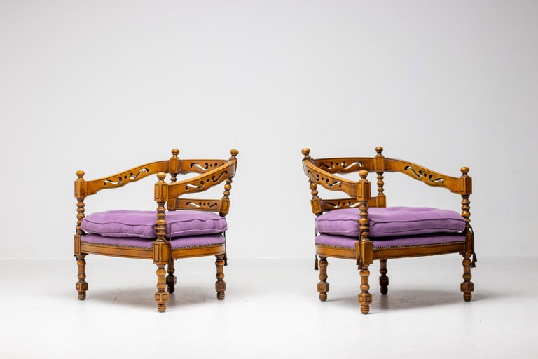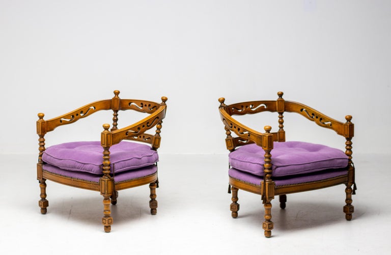 A sophisticated pair of “Gallery 1975” armchairs by Giorgetti, the renowned Italian maker celebrated for its craftsmanship and innovation. Designed with sculptural wooden frames and generously upholstered seats, these chairs embody Giorgetti’s signature balance of timeless elegance and contemporary comfort. The flowing lines of the arms and legs highlight the precision of Italian joinery, while the upholstery offers both refinement and ease, making them equally suited for formal living spaces or intimate lounge settings. Subtle yet striking, they demonstrate the quiet luxury and enduring quality for which Giorgetti is known. Perfect as statement pieces in a sitting area or as versatile accents in a modern interior, this pair of armchairs brings a touch of Italian design excellence to any environment.