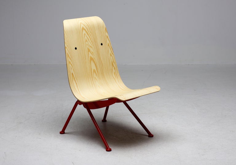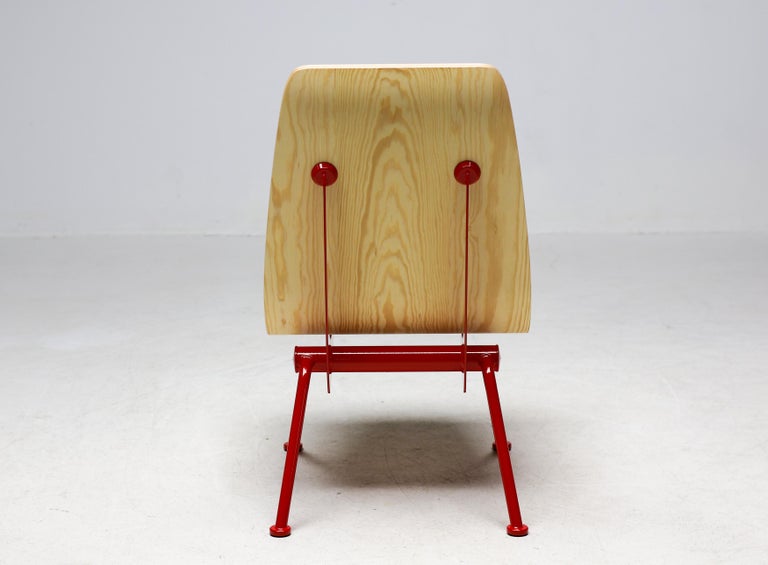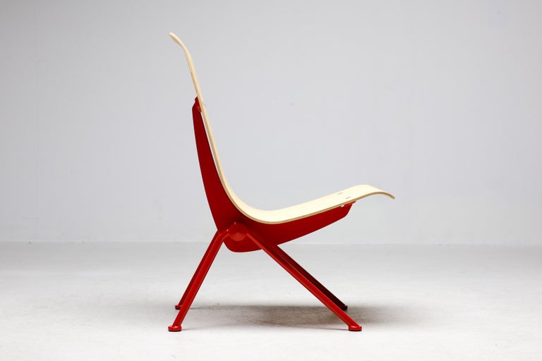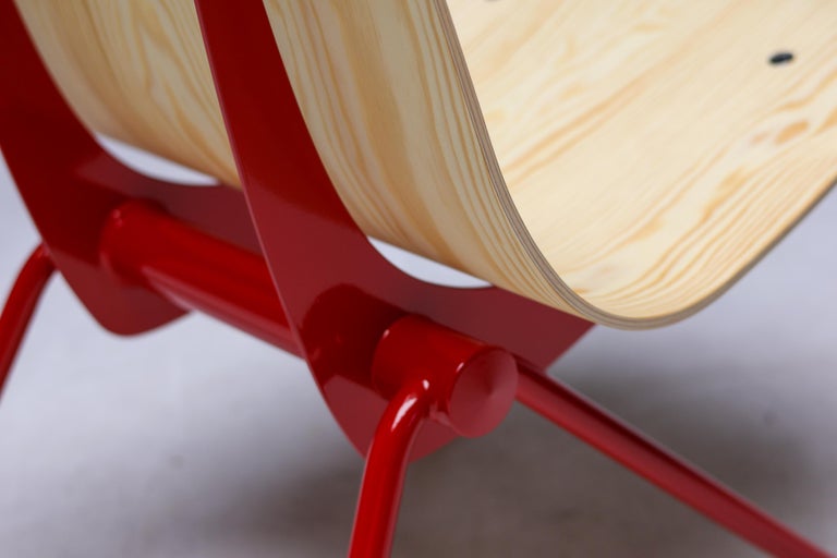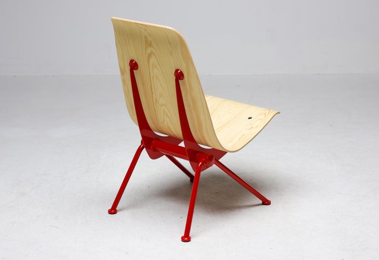 A rare limited-edition example of the iconic Antony Chair, originally designed in 1954 by Jean Prouvé and produced by Vitra. This sculptural piece is celebrated for its striking balance of engineering precision and organic form—hallmarks of Prouvé’s approach to modern furniture design. The chair features a bold red enameled steel frame that creates a dynamic structural silhouette, supporting the gently curved molded plywood seat and backrest. The single sweeping shell appears to float within the geometric base, showcasing Prouvé’s mastery of functional minimalism and industrial construction. Comfortable, visually light, and architecturally expressive, the Antony Chair remains one of the most distinctive designs of mid-century modern furniture. This limited edition by Vitra reflects the brand’s exceptional craftsmanship and fidelity to Prouvé’s original design. Details; Designer: Jean Prouvé Model: Antony Chair Manufacturer: Vitra Edition: Limited edition Materials: Enameled steel frame, molded plywood shell Frame color: Red Origin: Europe Period: Contemporary production of a 1954 design A highly collectible design object—equally suited for refined residential interiors, galleries, or design-focused workspaces.