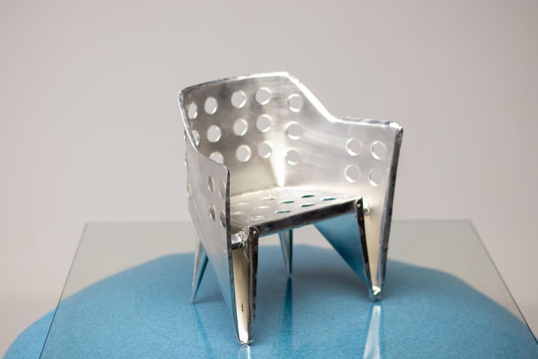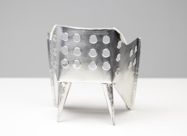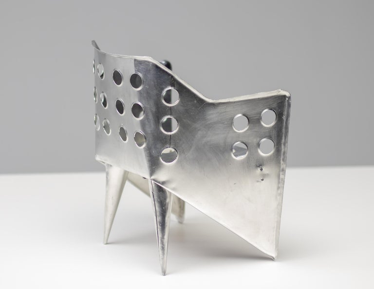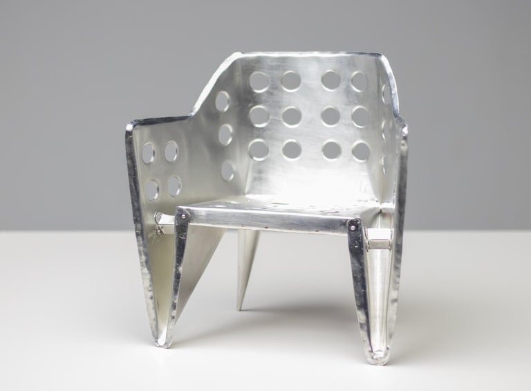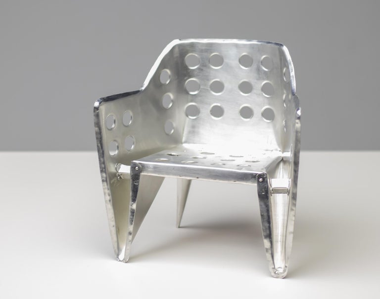 Exceptionally well executed handmade large scale model of this very rare chair designed by Gerrit Rietveld. Unmarked. If you are desperately looking for the perfect gift for an architect, look no further! Gerrit Rietveld (1888–1964), a Dutch architect and designer, was a pivotal figure in the De Stijl movement, renowned for his avant-garde contributions to modern art and design. Best known for the iconic Red and Blue Chair, Rietveld’s work epitomizes the movement’s principles, emphasizing geometric abstraction, primary colors, and asymmetry. His architectural masterpiece, the Rietveld Schröder House, is a UNESCO World Heritage site, exemplifying his commitment to functionalism and spatial innovation. Rietveld’s influence extended beyond furniture and architecture, shaping a lasting legacy in the realm of applied arts. His visionary approach and commitment to simplicity continue to inspire contemporary design, firmly placing him among the 20th century’s design luminaries.