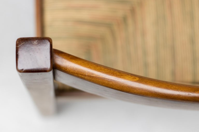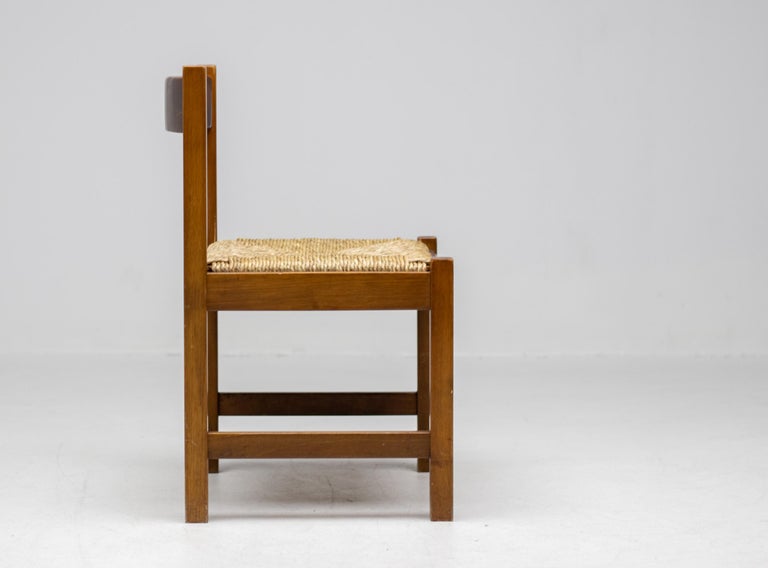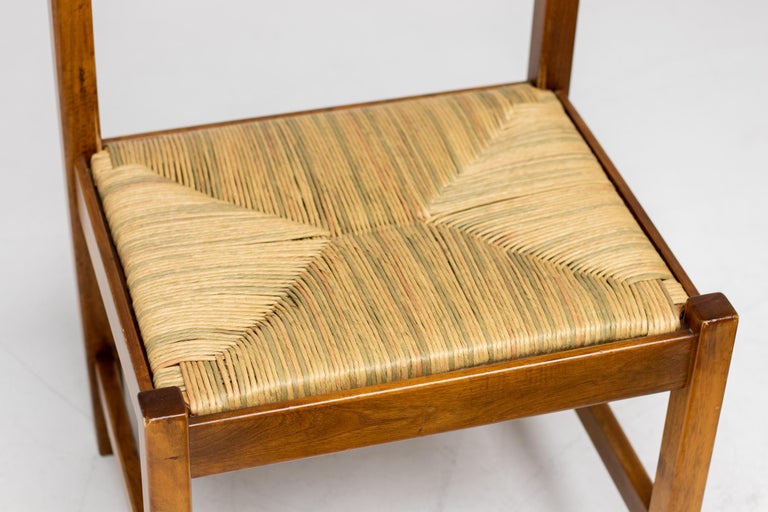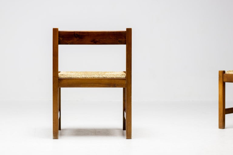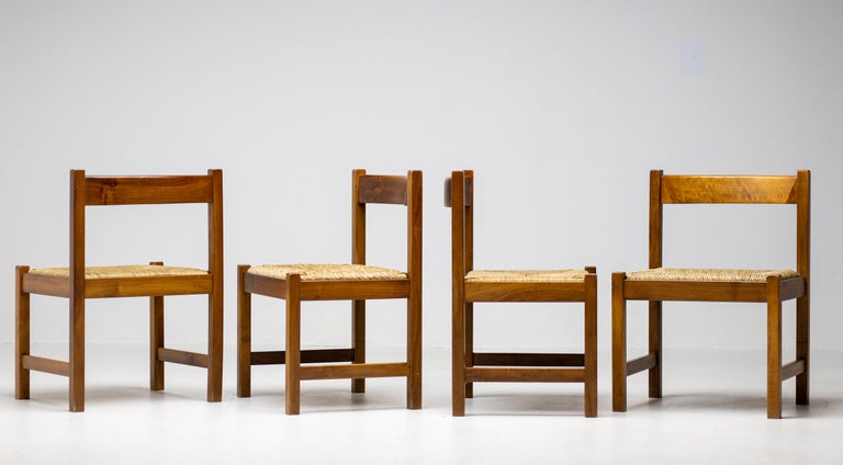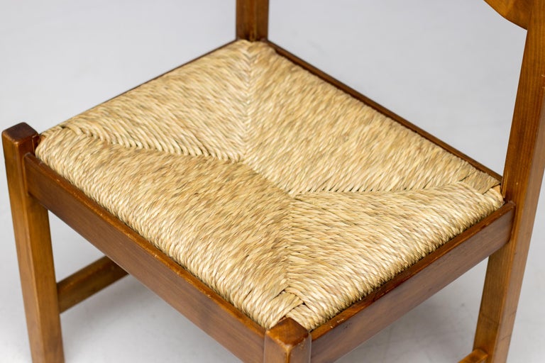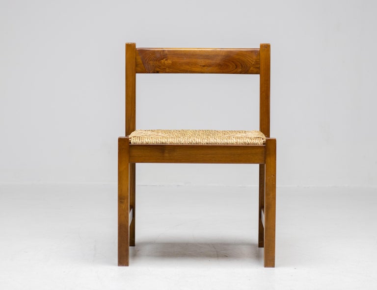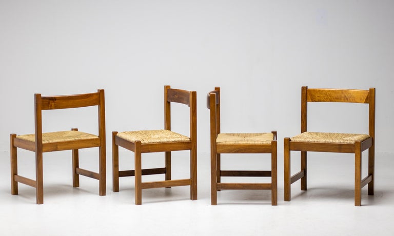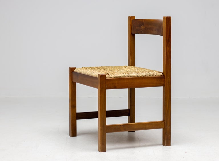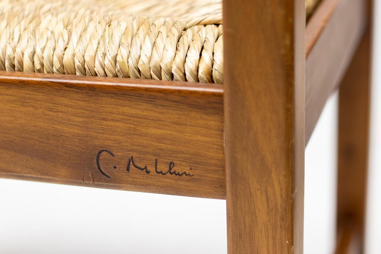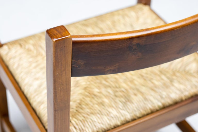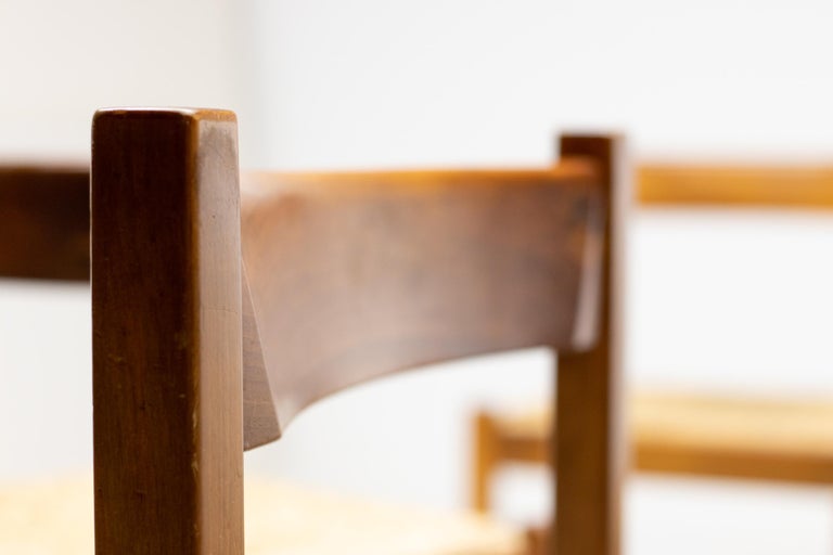Set of 4 dining chairs from the Torbecchia series, designed by brutalist architect Giovanni Michelucci for Poltronova, 1964. Solid walnut structure with seats upholstered in cane. This architectural set will enlighten your interior through its solid and grand presence. Marked with Giovanni Michelucci signature on the seat edge. Literature: Domus, n. 426, May 1965 G. Gramigna, Repertorio del design italiano 1950-2000 per l’arredamento domestico, Allemandi, 2003.