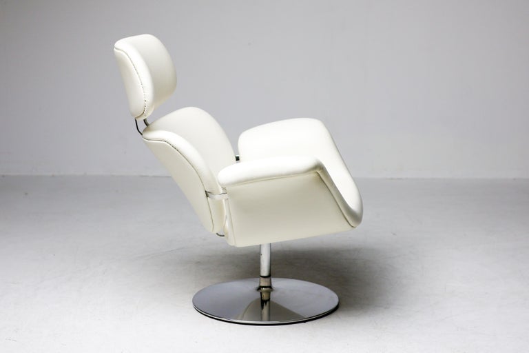 An icon of modernist design, the Tulip F545 lounge chair by Pierre Paulin for Artifort exemplifies sculptural elegance and exceptional comfort. Its fluid, organic silhouette—instantly recognizable—embodies Paulin’s pioneering approach to form, ergonomics, and material innovation. Upholstered in supple white leather, the chair presents a refined, contemporary presence that complements both minimalist and curated interiors. The enveloping shell and generous proportions offer a relaxed yet supportive sit, while the expertly tailored upholstery highlights the purity of the design. Crafted with Artifort’s renowned attention to quality, the Tulip F545 remains as relevant today as when it was first introduced. A coveted collector’s piece and a statement accent, this chair works beautifully as a standalone object or paired within a modern living or lounge setting. Details Designer: Pierre Paulin Manufacturer: Artifort Model: Tulip F545 Upholstery: White leather Origin: Netherlands Style: Mid-Century Modern / Modernist A timeless design classic that seamlessly bridges comfort, craftsmanship, and sculptural form.