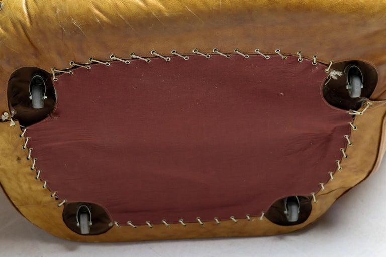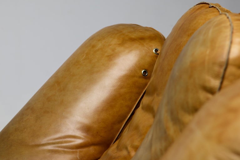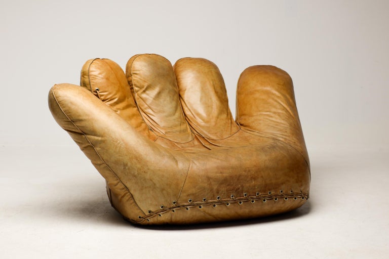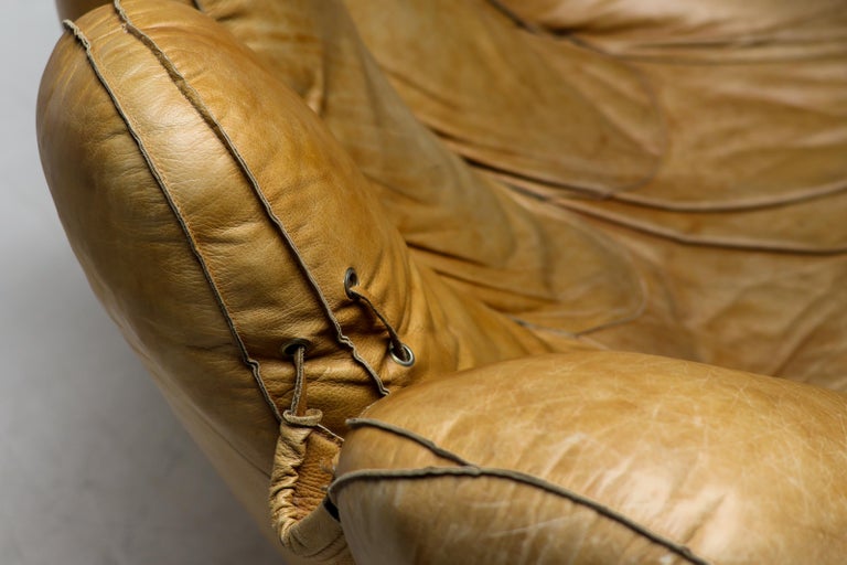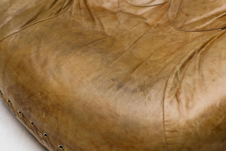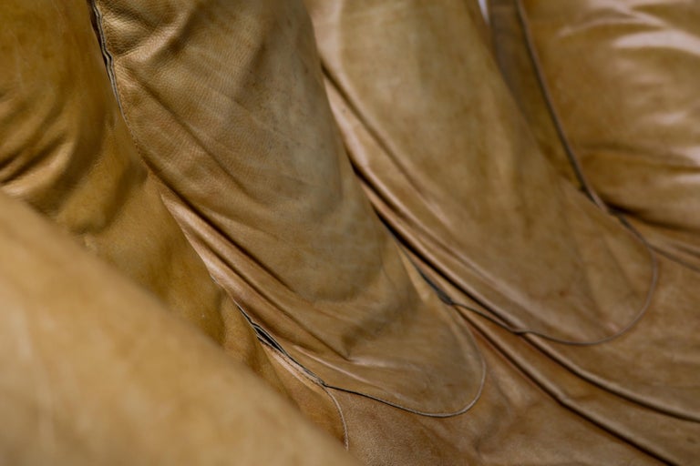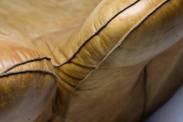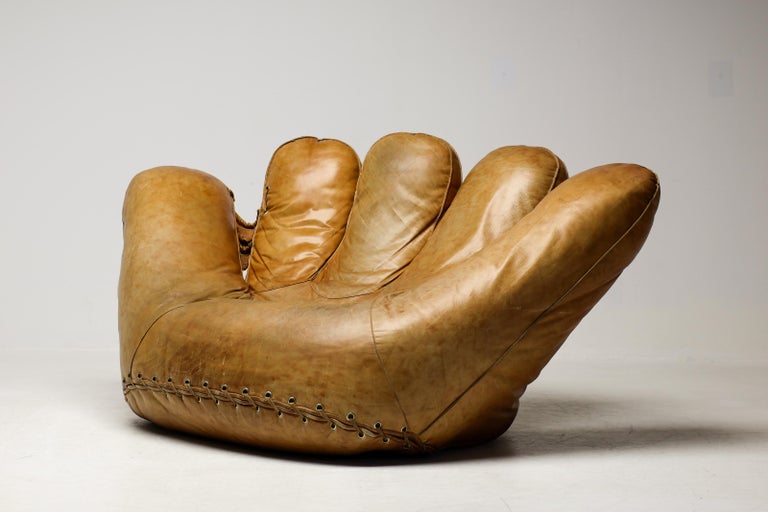 An icon of Anti-Design. Massive scale, natural brown leather, and the ultimate collector’s statement piece. The Icon. Few designs blur the line between brutalist sculpture and cozy refuge like the legendary “Joe” armchair. Designed in 1970 by De Pas, D’Urbino & Lomazzi for Poltronova, this piece was a radical homage to Joe Colombo—and a deliberate middle finger to the rigid, minimalist furniture of the era. Inspired by a well-worn baseball glove, it is part pop art, part architecture, and entirely unforgettable. This Piece. Offered here is a museum-quality vintage example from the 1970s, retaining the soulful patina only decades of honest character can provide. Upholstered in rich, natural brown leather, this chair has evolved into a deep, burnished cognac hue—softer and more nuanced than any modern reissue. The five massive, rounded slabs float like catcher’s mitts, cradling the sitter in a low, grounded, almost primal embrace. Condition. Vintage, excellent structural condition. The leather shows authentic signs of age: subtle graining, light surface marks, and a gorgeous worn-in softness that cannot be faked. No rips, tears, or odors. The original padded base is stable and sturdy. Why It Matters. This is not a chair for the timid. It is for the serious collector who wants a conversation piece that delivers physical comfort. In a world of mass production, the “Joe” chair remains a landmark of Italian radical design—equal parts humor, protest, and luxury. Dimensions: · Height: 35 in. (89 cm) · Width: 55 in. (140 cm) · Depth: 39 in. (99 cm) · Seat Height: 13 in. (33 cm) Shipping: Freight shipping available worldwide. Crating included.