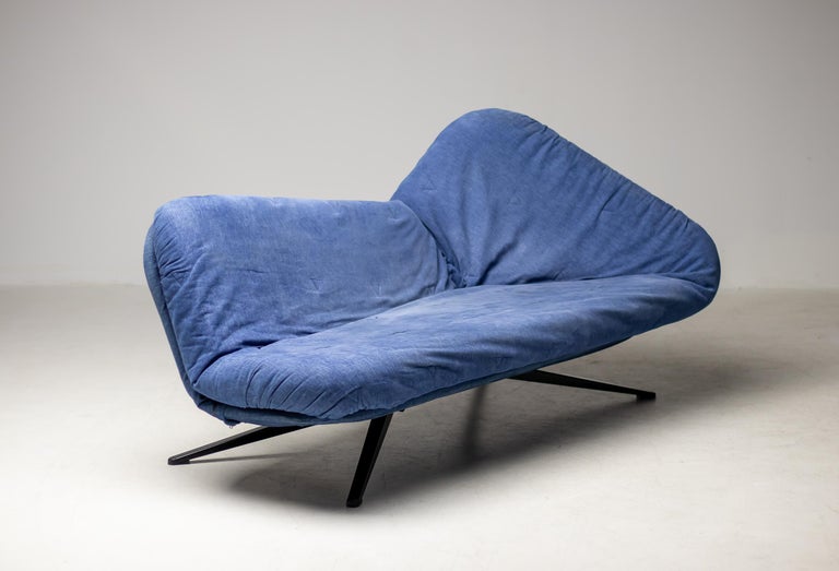 Sculptural and highly functional “Ribalta” adjustable daybed, designed by Fabrizio Ballardini for Arflex. A standout example of late 20th-century Italian modernism, the Ribalta combines sleek form with flexible design, effortlessly transitioning from a streamlined sofa to a comfortable daybed. Fabrizio Ballardini, architect since 1977, turned his attention to industrial design in 1980, working with many internationally renowned furniture factories. He designed.o. for Arflex, Roche Bobois, Bernini, Sirrah, Bontempi, Progetti, Kenzo Maison. The daybed’s distinctive profile features clean architectural lines, softened by plush, generously padded cushions. The backrest can be easily adjusted to multiple reclining positions or laid completely flat, making this piece ideal for living rooms, guest spaces, or studio interiors where versatility and elegance are equally prized. Upholstered in a high-quality casual cotton, the daybed rests on a minimalist metal base that provides both visual lightness and structural integrity. As with all Arflex pieces, craftsmanship and attention to detail are exceptional. Details: Designer: Fabrizio Ballardini Manufacturer: Arflex, Italy Model: Ribalta Adjustable Daybed Origin: Italy Period: Late 20th Century Materials: Cotton upholstery, Metal base Condition: Excellent vintage condition; fully functional with minimal wear A perfect blend of innovation and comfort, the Ribalta is both a design statement and a highly usable piece — ideal for collectors of Italian modern, multifunctional furniture, or fans of Arflex’s refined aesthetic.