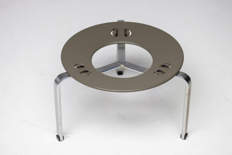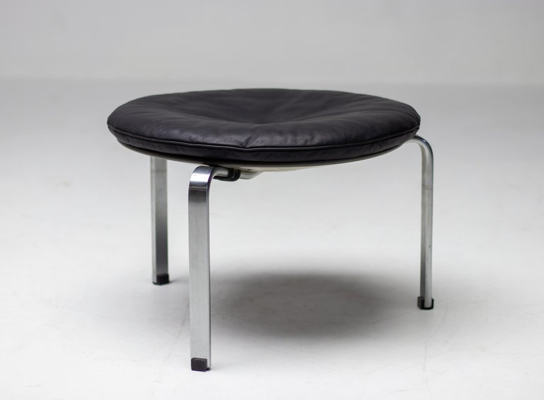 A masterclass in Scandinavian minimalism, the PK33 Stool by Poul Kjærholm exemplifies the Danish designer’s poetic balance between material honesty and sculptural precision. Designed in 1959, this rare early example was produced by E. Kold Christensen, Kjærholm’s original manufacturer and longtime collaborator. The stool’s elegant form is defined by its three-legged brushed steel frame and a circular, hand-stitched seat cushion upholstered in supple black leather. Every element reflects Kjærholm’s refined approach to craftsmanship—where industrial materials meet artisanal execution with effortless grace. The PK33 shares the same structural principles as Kjærholm’s celebrated PK71 and PK80 designs, yet stands apart as a study in pure, functional beauty. Its light, balanced silhouette makes it an ideal piece for both collectors of mid-century Danish design and modern interiors seeking a timeless accent of understated luxury. Designer: Poul Kjærholm Model: PK33 Manufacturer: E. Kold Christensen Year of Design: 1959 Country: Denmark Materials: Brushed steel frame, black leather upholstery Condition: Excellent vintage condition with gentle patina consistent with age and use Produced by E. Kold Christensen, Copenhagen — the original manufacturer of Poul Kjærholm’s early works prior to production transferring to Fritz Hansen. A quintessential example of Kjærholm’s philosophy that “steel’s constructive potential can be just as noble as wood’s”—the PK33 stands as an enduring icon of Nordic modernism.