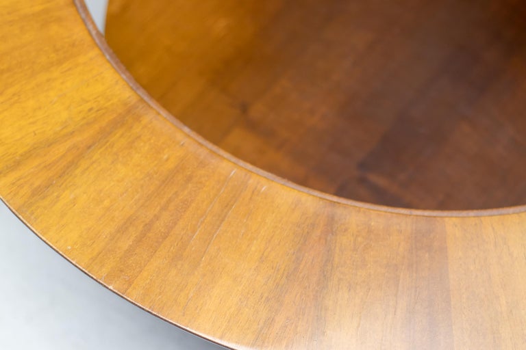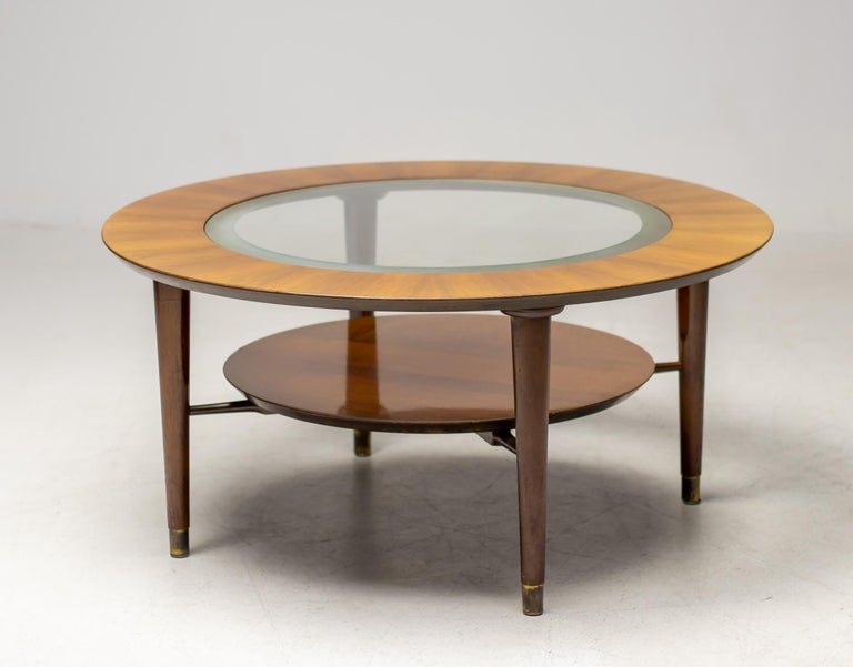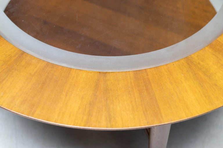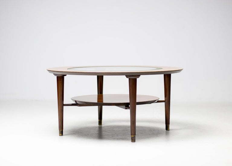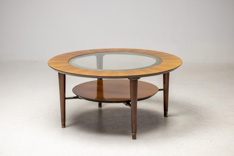 The Poetry of the 1950s Drawing Room There is a specific magic to the Italian disegno of the 1950s—a moment when furniture transcended utility and became pure architecture on a domestic scale. This unsigned coffee table embodies that golden era entirely. Executed in rich, book-matched walnut and finished with patinated brass sabots, this piece channels the sophisticated geometries of Gio Ponti and the lyrical structuralism of Ico Parisi. While unattributed, the craftsmanship, material choice, and sculptural tension place it firmly within the orbit of these masters. The design thrives on elegant contradictions: · Warmth vs. Precision: The richly grained walnut offers organic warmth, while the polished brass feet (raised on delicate conical supports) introduce a note of jeweler-like precision and lift. This 1950s original has been professionally preserved. The walnut retains its original warm amber lacquer, showing only the gentle patina of seven decades—no structural cracks, no water rings on the wood. The brass feet exhibit a desirable, light oxidation, easily polished to a mirror shine if preferred, though we recommend retaining the soft vintage glow. In a world of homogeneous design, this table offers a specific voice: Italian, post-war, optimistic, and unapologetically elegant. It is the perfect foil for a Danish modern sofa or a brutalist concrete floor. Ideal for the collector who values la bell’ombra—the beautiful shadow cast by great design. Shipping: Professionally crated. Glass top will be secured separately with shock-absorbent padding. Provenance: A mid-century modern villa in the south of Italy.