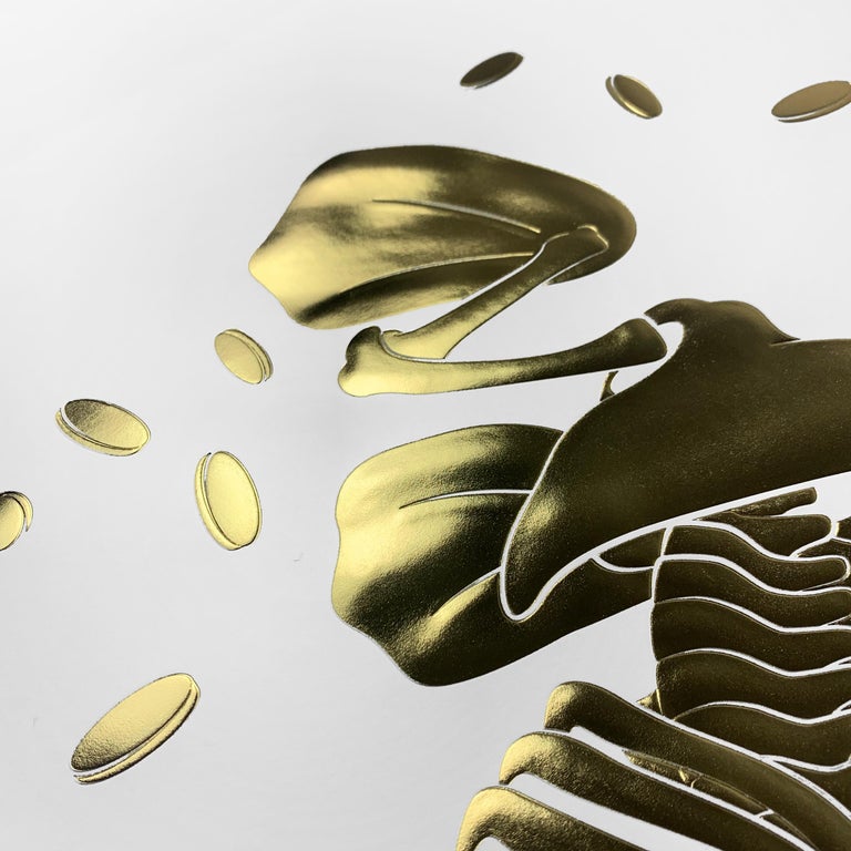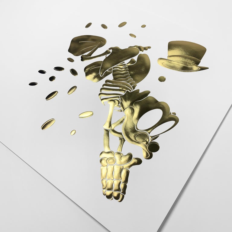 A striking and collectible work by contemporary artist Alessandro Paglia, this embossed golden limited edition print, Scrooge, is presented in a made-to-measure frame with museum-quality glass, offering both protection and a gallery-ready presentation. Known for blending classical motifs with modern sensibilities, Paglia’s work captures visual drama, tactile richness, and refined craftsmanship. Design & Features Embossed golden print with intricate detailing, giving a sculptural, tactile quality Limited edition, signed and numbered by the artist, ensuring rarity and authenticity Custom-made frame fitted with museum glass, preserving the metallic sheen while protecting against UV damage Print size: 20 x 20 cm Rich metallic finish interacts beautifully with light, enhancing depth and luminosity Evocative imagery inspired by the classic Scrooge theme, rendered in Paglia’s contemporary style Condition & Provenance Mint condition, carefully preserved in its bespoke frame. Comes directly from a limited edition release for Neleman Organic Wines, making it a rare and desirable piece for collectors. Why It Stands Out Alessandro Paglia’s work is celebrated for its storytelling, luxurious materiality, and collectible scarcity. Framed and ready for display, this embossed golden Scrooge print is a statement piece that bridges contemporary art, craftsmanship, and limited edition exclusivity—a standout addition for private collections or gallery settings.