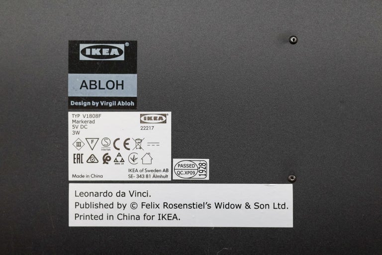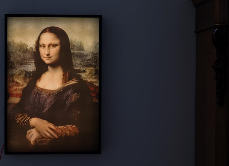 Virgil Abloh, “Mona Lisa”, Artwork with Steel Frame, 2019 Backlit artwork, presented in a black powder-coated, steel frame as per the artist’s specification. Panel: Polystyrene plastic, Paint. Cover: 100% polypropylene. On/off switch located on the bottom left-hand side of the piece. From an unknown edition size, now sold out. Sold in mint / ‘as new’ condition. 30.3 × 20.9 × 2.8 in (77 × 53 × 7 cm)